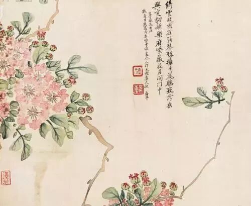 国画经常用来表现春天的花卉,柔嫩新生的那种。所以女主刚入宫的时候,粉色搭配,就是这么一只粉萌小透明呀。