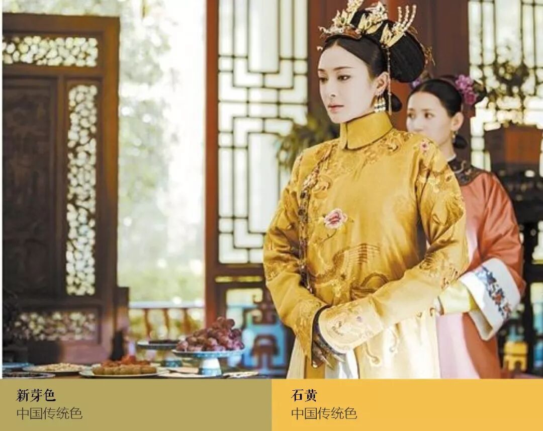 清朝皇后、贵妃服饰常用色系,和帝后的黄色系象征类似,赋予权利