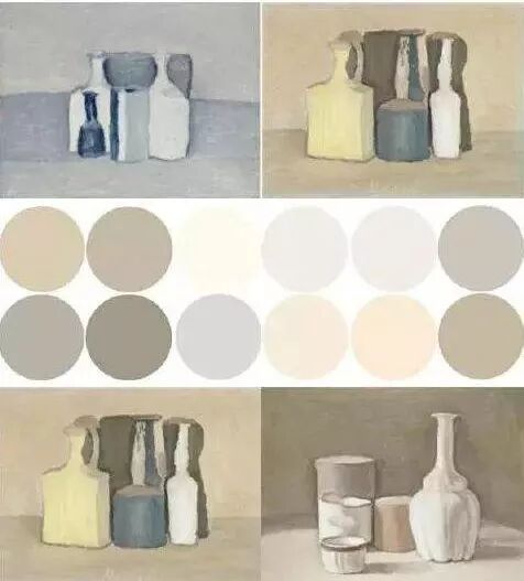 莫兰迪灰的基础从三原色而来,色彩高灰、高白,鲜色少、纯度低。