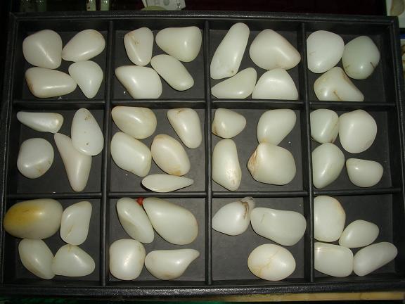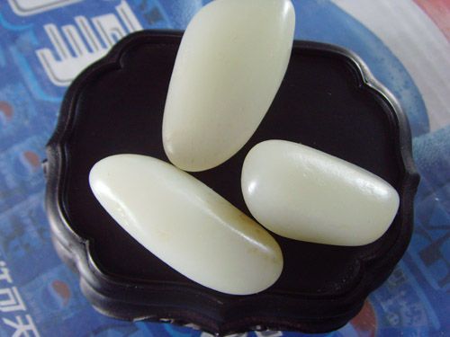 光白籽:面光滑无皮(或者很少的皮),白度一级,无明显瑕疵,外形圆润的原籽被称为光白籽,属于比较开门的东东,品质(特别是白度)在和田玉里数一数二,羊脂白玉也都出于此类中,块度较大会非常值钱