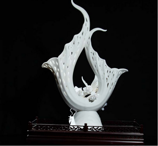 从釉面上看,德化白釉为纯白釉,而北方唐宋时代的白瓷釉则泛淡黄色。元、明时代景德镇生产的白瓷却白里微微泛青,与德化白瓷有明显的区别。造成这种差别的原因,不仅与原料的化学组成,特别是氧化铁、氧化钛的含量有关,也与烧成气氛的性质有关。北方白瓷的特点是胎、釉中Tio、Aio含量比较高,烧成时采用氧化气氛,故瓷器呈现白中泛黄的色调;景德镇白瓷的特点是胎釉中Fe、Tio、Aio含量均较适中,烧成时采用还原气氛,故瓷器呈现白里泛青的色调;